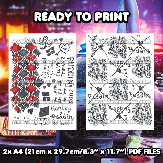 • Harley Quinn (Club) - Suicide Squad | READY TO PRINT .PDF TATTOOS | FULL SET - AlunaCreates