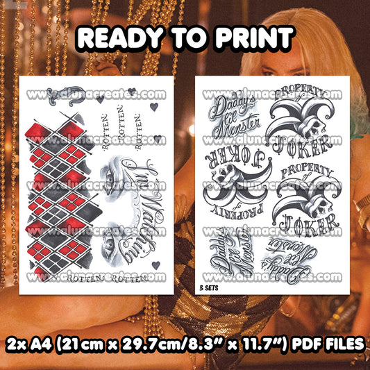 Harley Quinn - Birds of Prey | READY TO PRINT .PDF TATTOOS | FULL SET - AlunaCreates