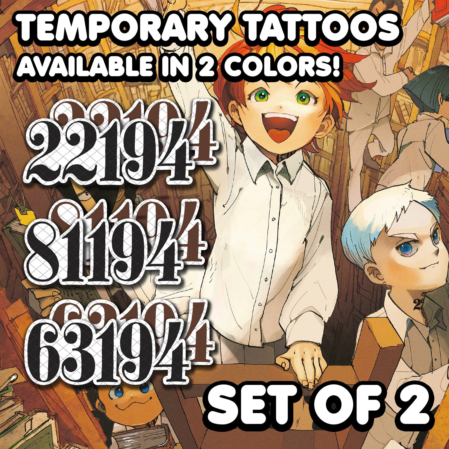 Temporary Tattoos inspired by Emma, Norman and Ray from The Promised Neverland. As accurate with manga/anime as possible.