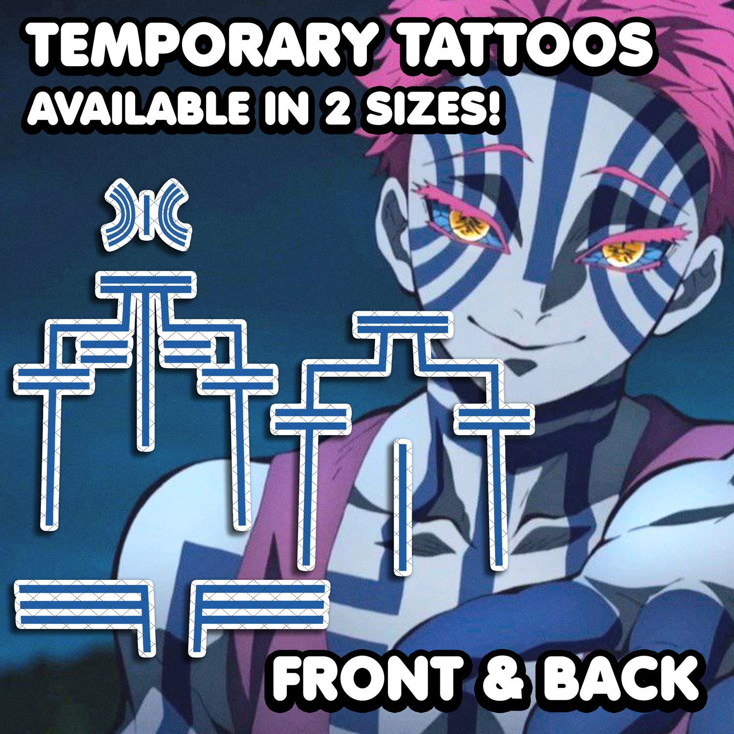 Akaza - Demon Slayer | Temporary Tattoos | FRONT & BACK - AlunaCreates